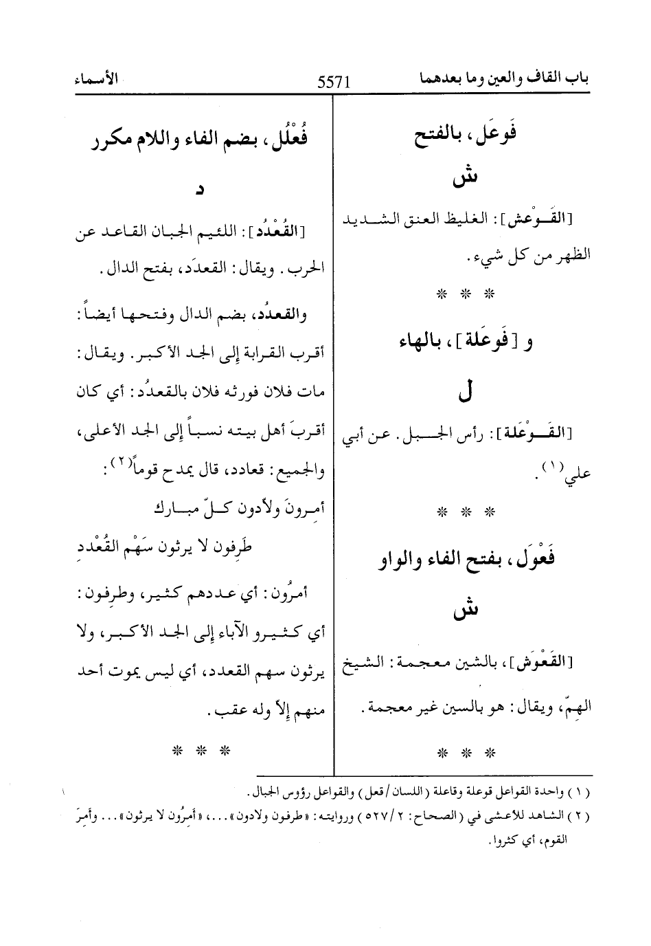 مات فلان فورثه فلان بالقعدُد: أي كان أقربَ أهل بيته نسبا إلى الجد الأعلى، والجميع: قعادد، قال يمدح قوما «2»: