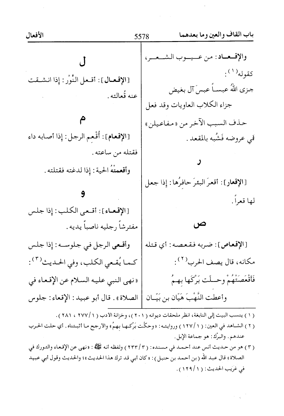 [الإقعاص]: ضربه فقعصه: أي قتله مكانه، قال يصف الحرب «2»: