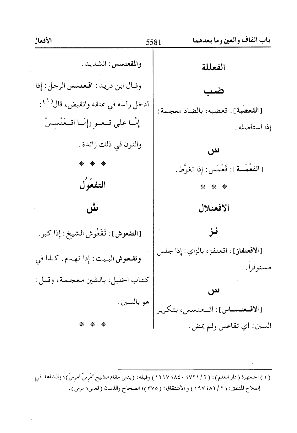 [الاقعنفاز]: اقعنفز، بالزاي: إذا جلس مستوفزا.