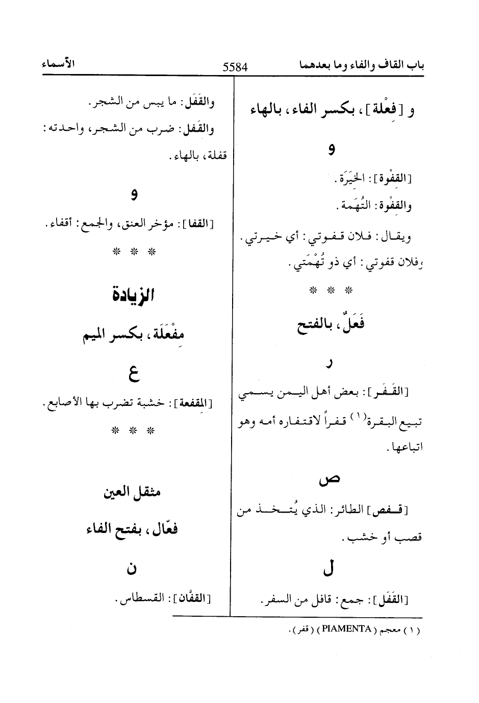 (1) معجم) PIAMENTA ((قفر).