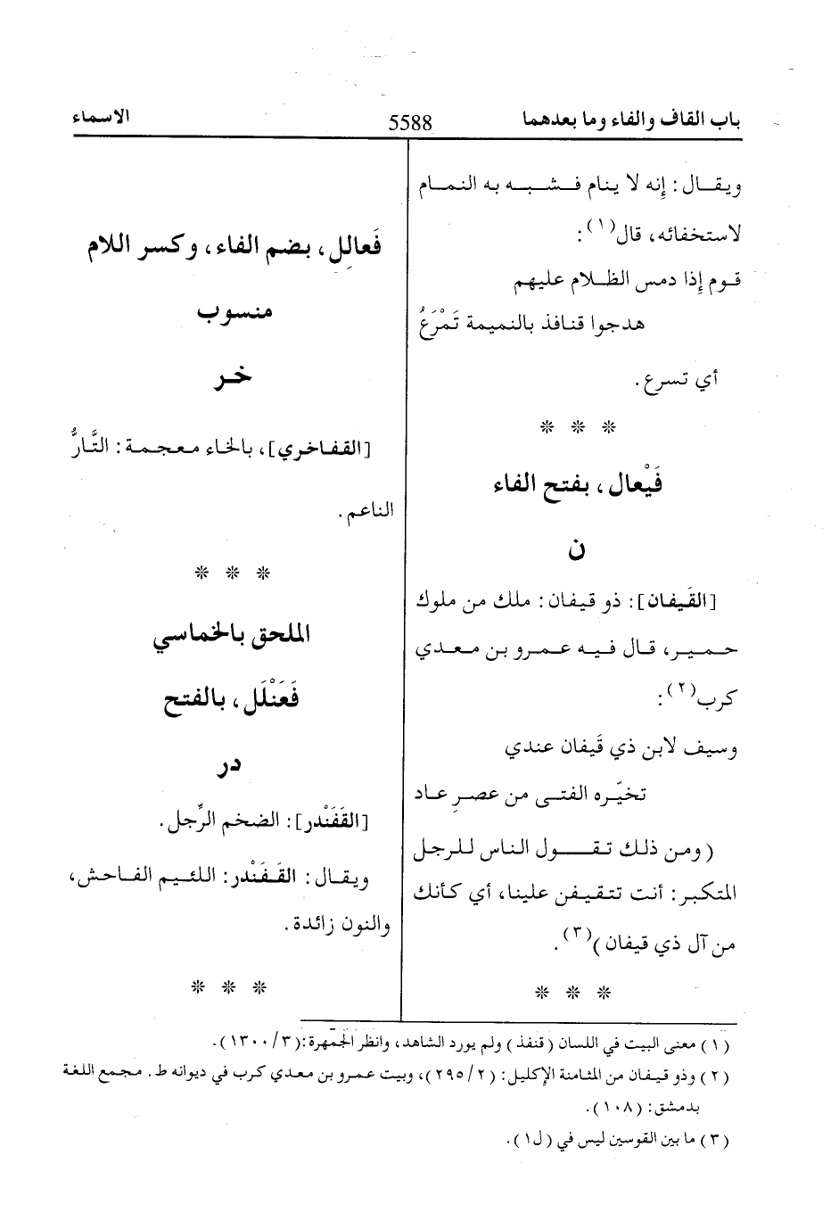 ... فَعالِل، بضم الفاء، وكسر اللام منسوب