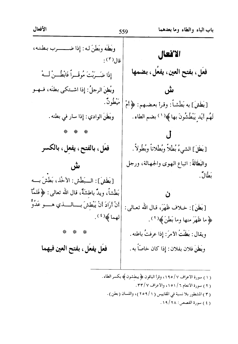 (3) المشطور بلا نسبة في المقاييس (1/ 259)، واللسان (بطن).
