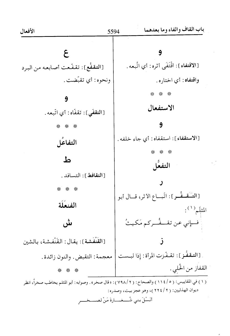 [التقفُّر]: اتّباع الأثر، قال أبو المثلّم «1»:
