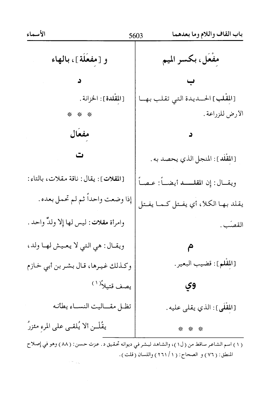 (1) اسم الشاعر ساقط من (ل 1)، والشاهد لبشر في ديوانه تحقيق د. عزت حسن: (88) وهو في إصلاح المنطق: (76) والصحاح: (1/ 261) واللسان (قلت).