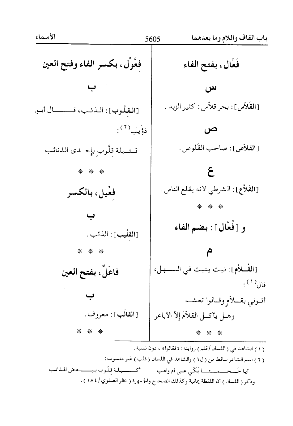 [القُلَّام]: نبت ينبت في السهل، قال «1»: