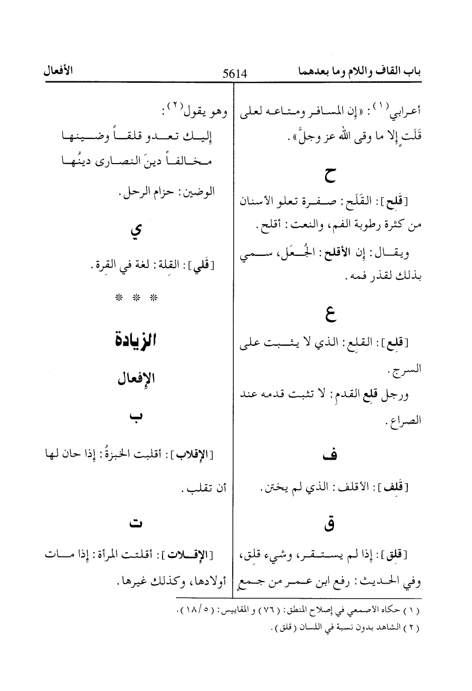 (1) حكاه الأصمعي في إصلاح المنطق: (76) والمقاييس: (5/ 18).