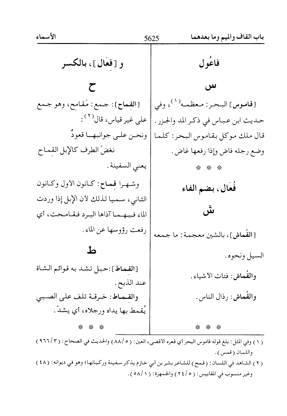 (1) وفي المثل: بلغ قوله قاموس البحر أي قعره الأقصى، العين: (5/ 88) والحديث في الصحاح: (3/ 966).
