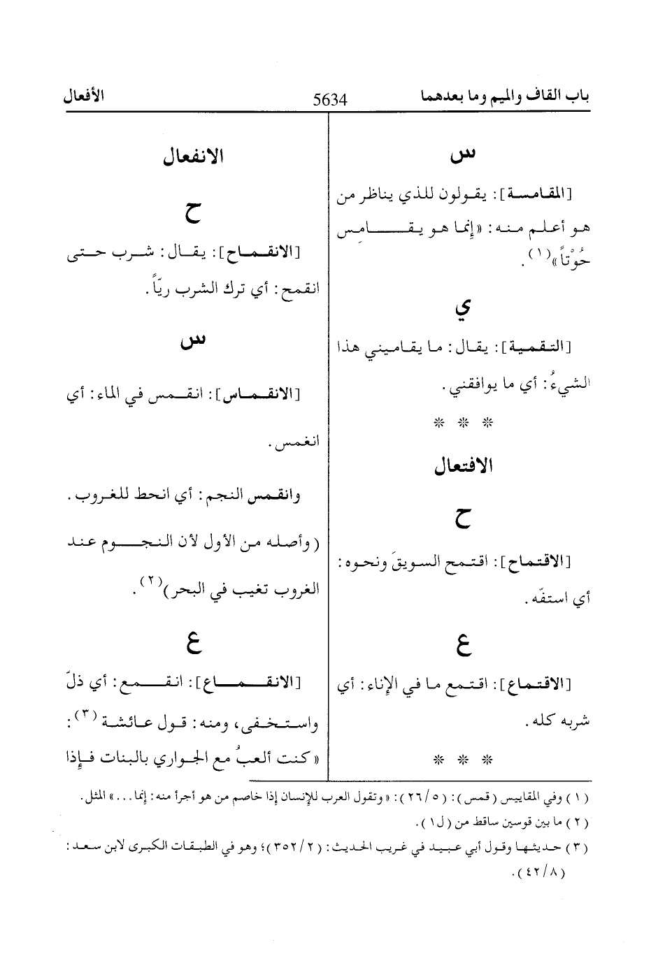 [الانقماح]: يقال: شرب حتى انقمح: أي ترك الشرب ريّا.