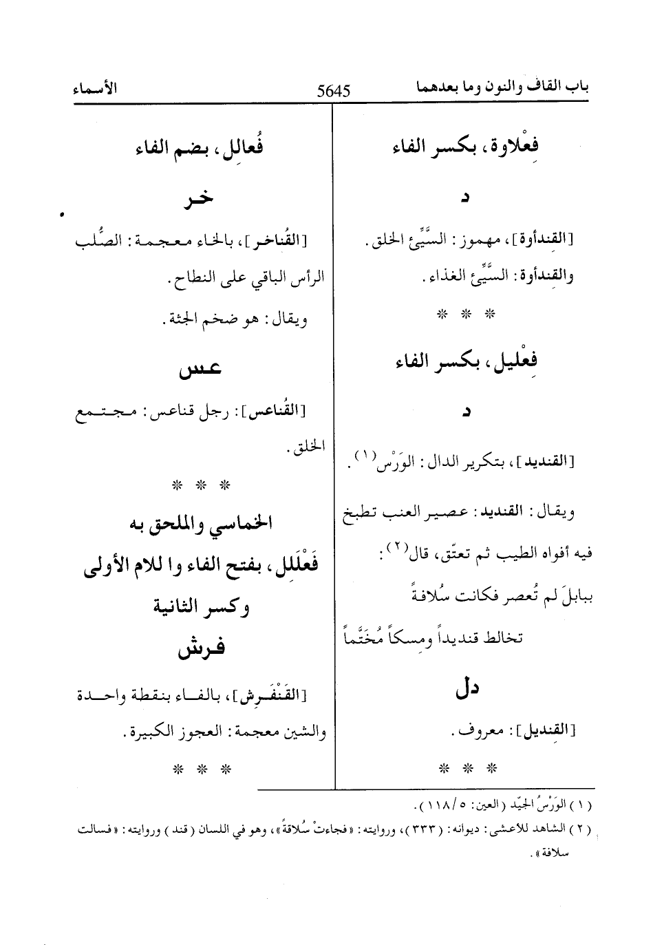 فَعْلَلِل، بفتح الفاء واللام الأولى وكسر الثانية