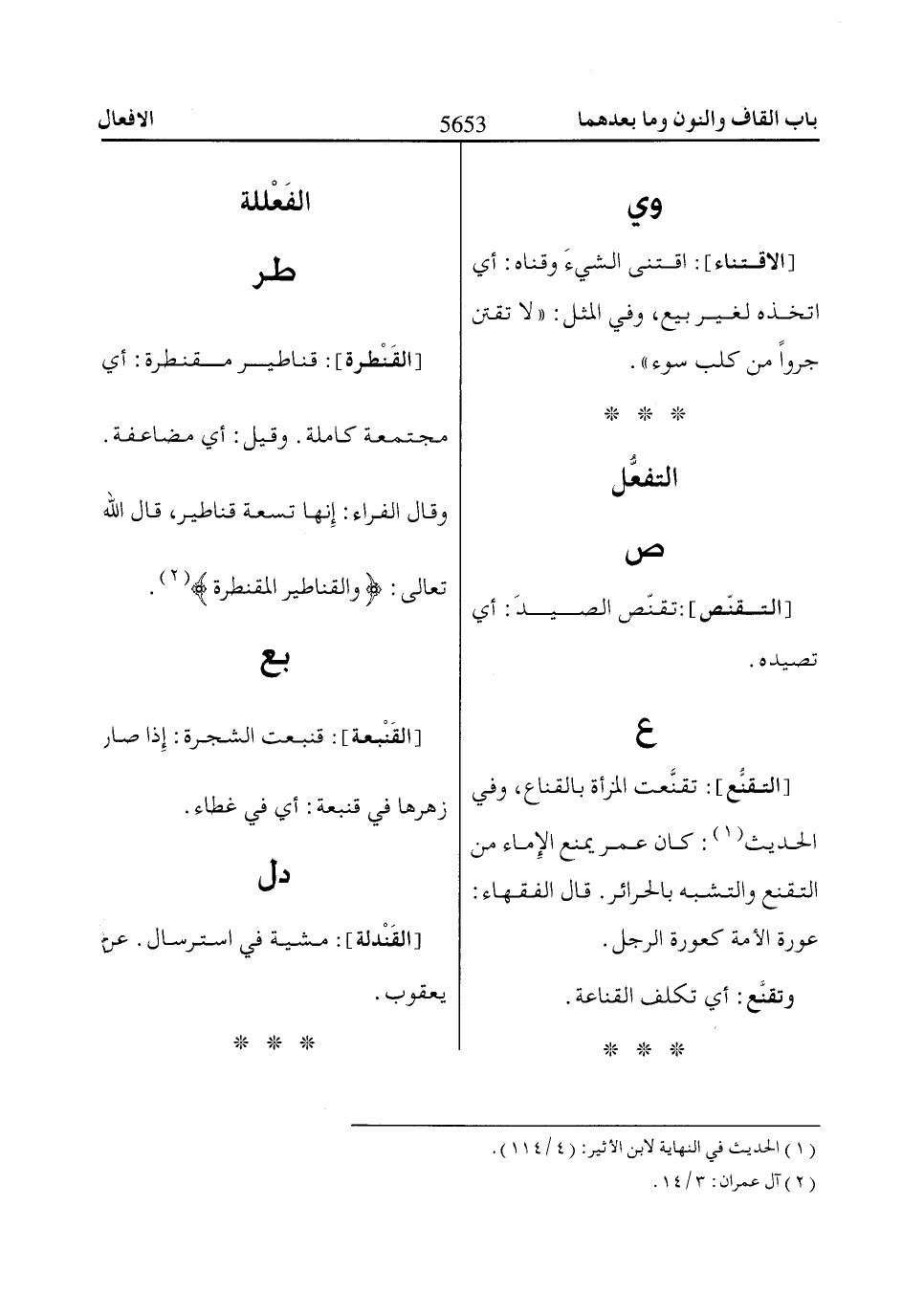 [القَنْطرة]: قناطير مقنطرة: أي مجتمعة كاملة. وقيل: أي مضاعفة.