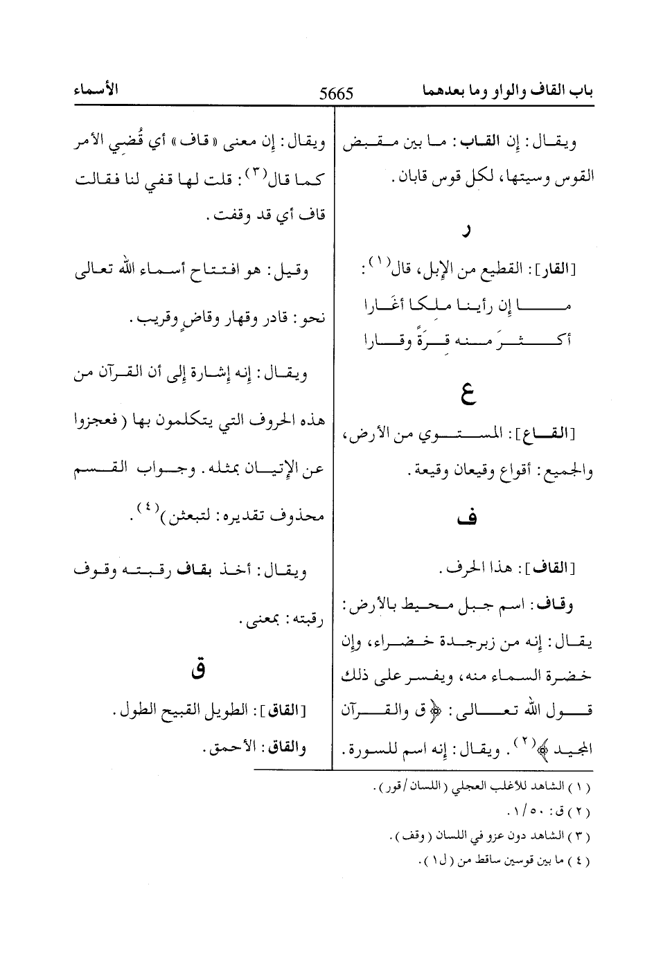 وقيل: هو افتتاح أسماء اللّاه تعالى نحو: قادر وقهار وقاضٍ وقريب.