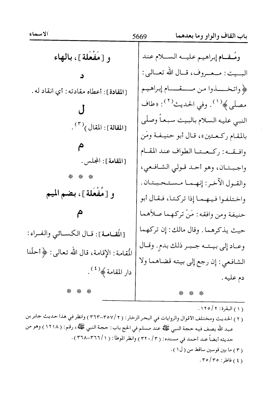 المُقامة: الإقامة، قال اللّاه تعالى: أَحَلَّناا داارَ الْمُقاامَةِ «4».