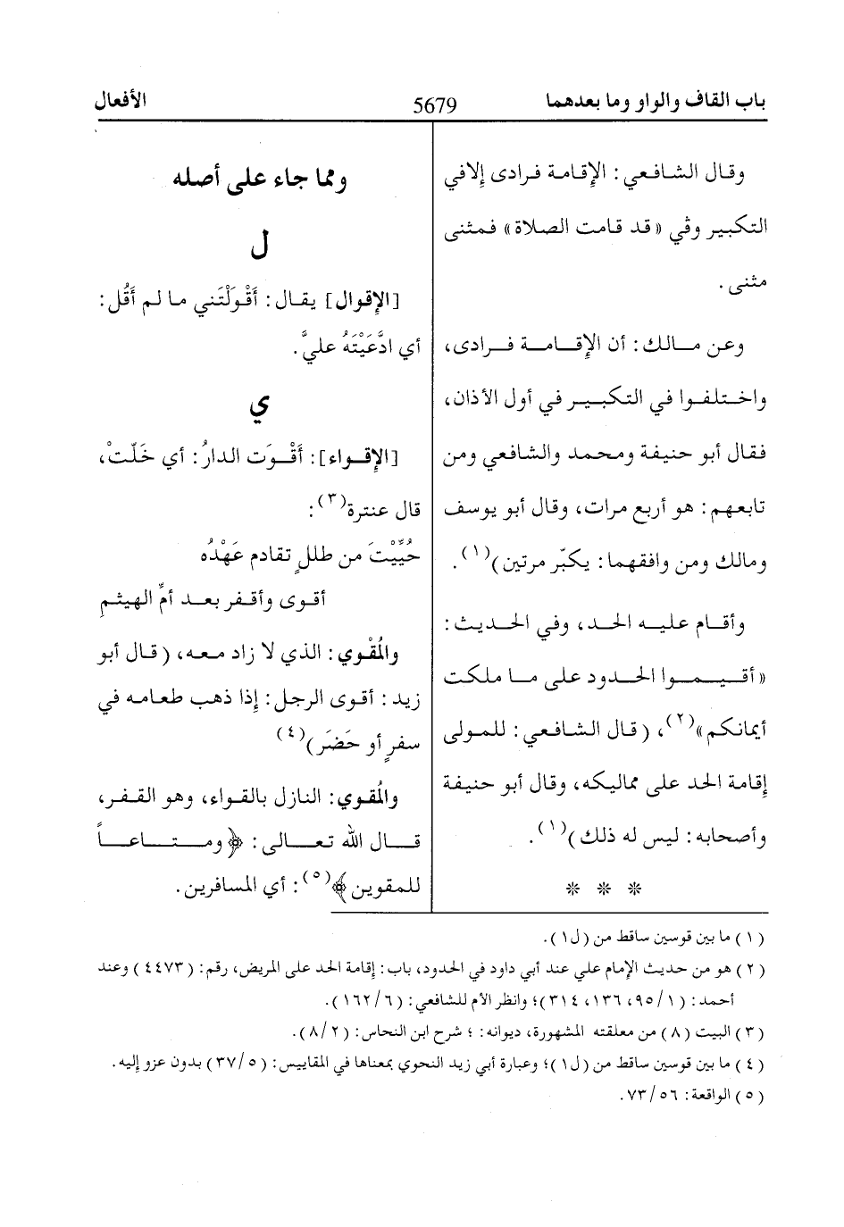 (4) ما بين قوسين ساقط من (ل 1)؛ وعبارة أبي زيد النحوي بمعناها في المقاييس: (5/ 37) بدون عزو إليه.