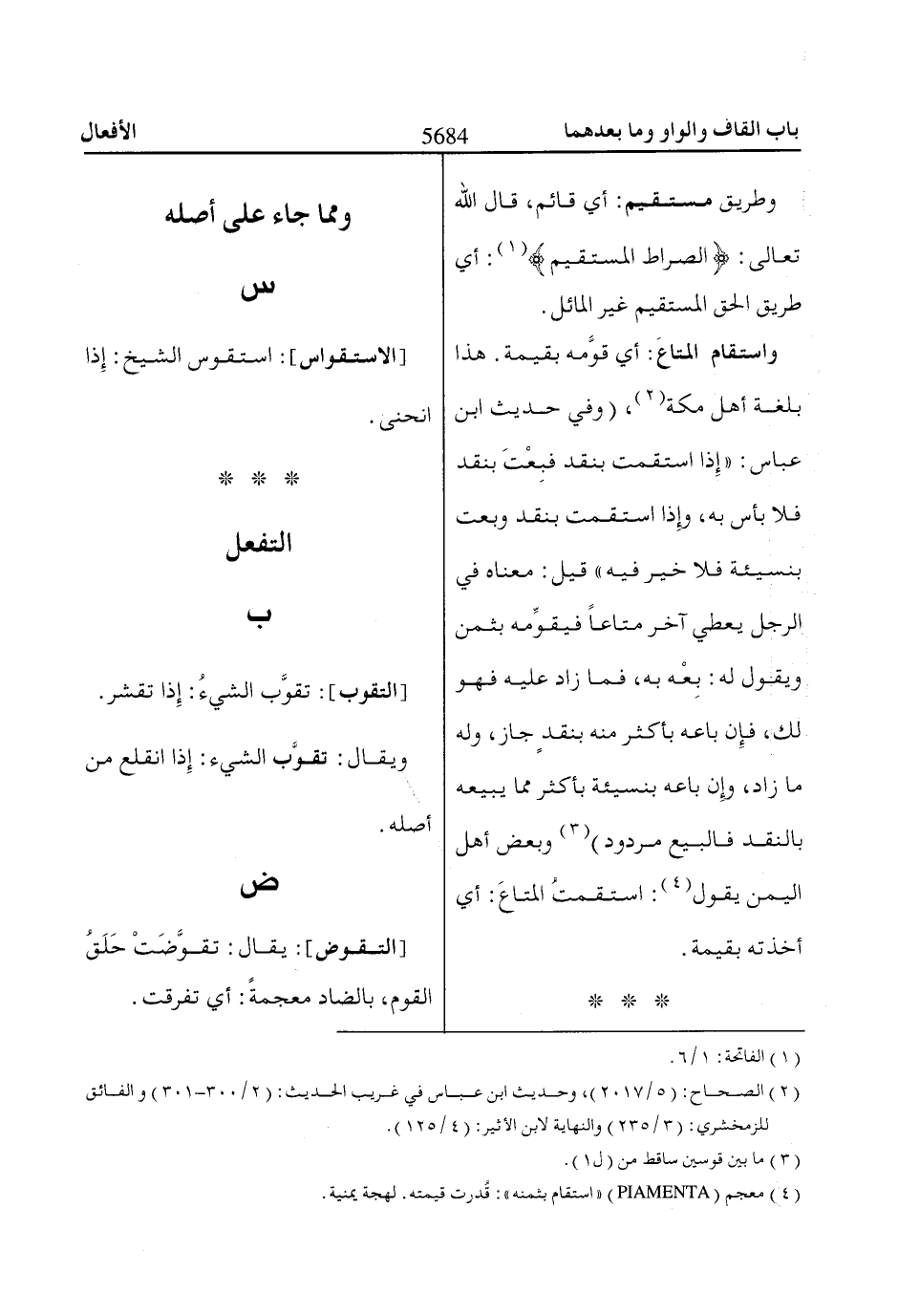(4) معجم) PIAMENTA («استقام بثمنه»: قُدرت قيمته. لهجة يمنية.