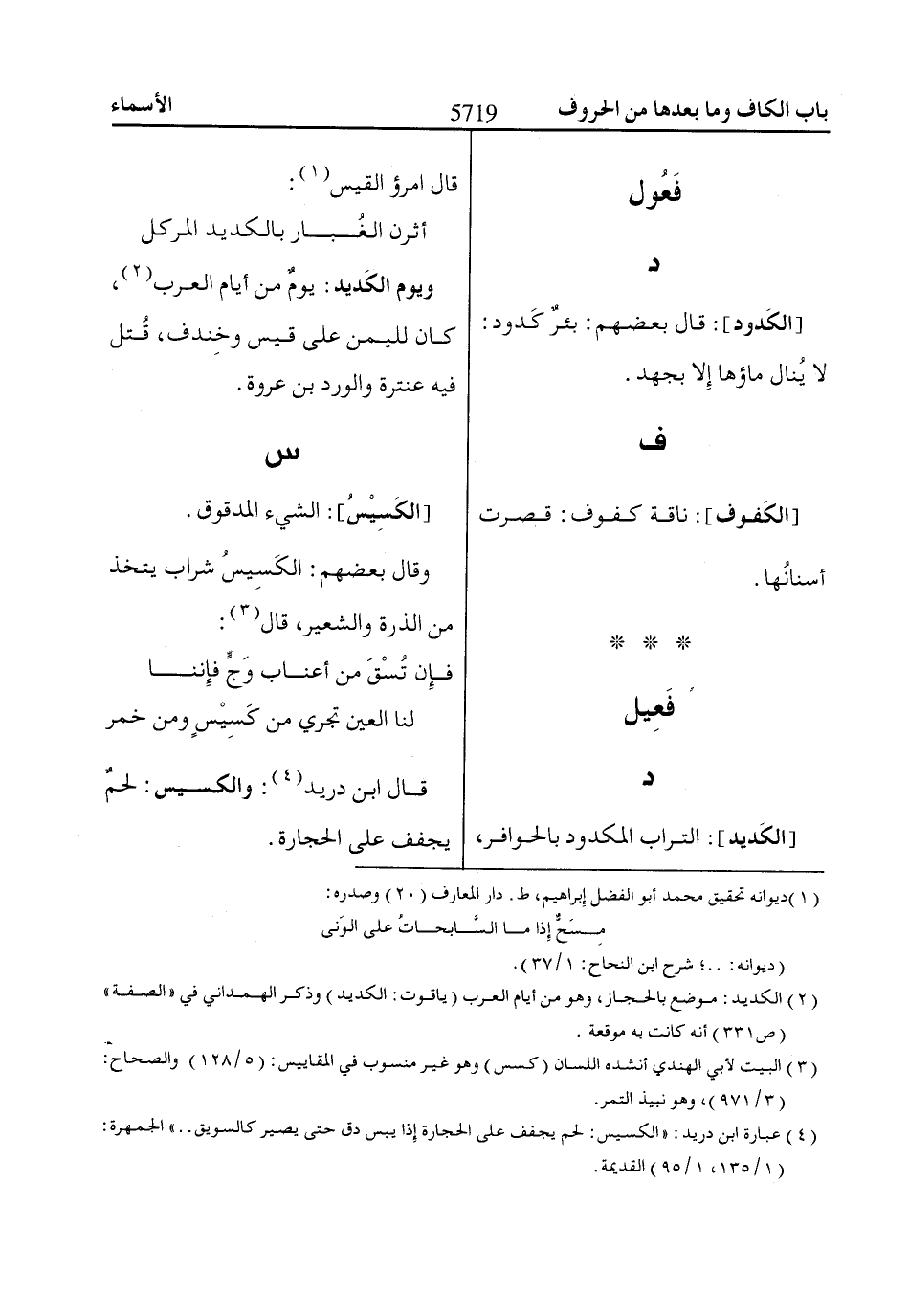(3) البيت لأبي الهندي أنشده اللسان (كسس) وهو غير منسوب في المقاييس: (5/ 128) والصحاح: