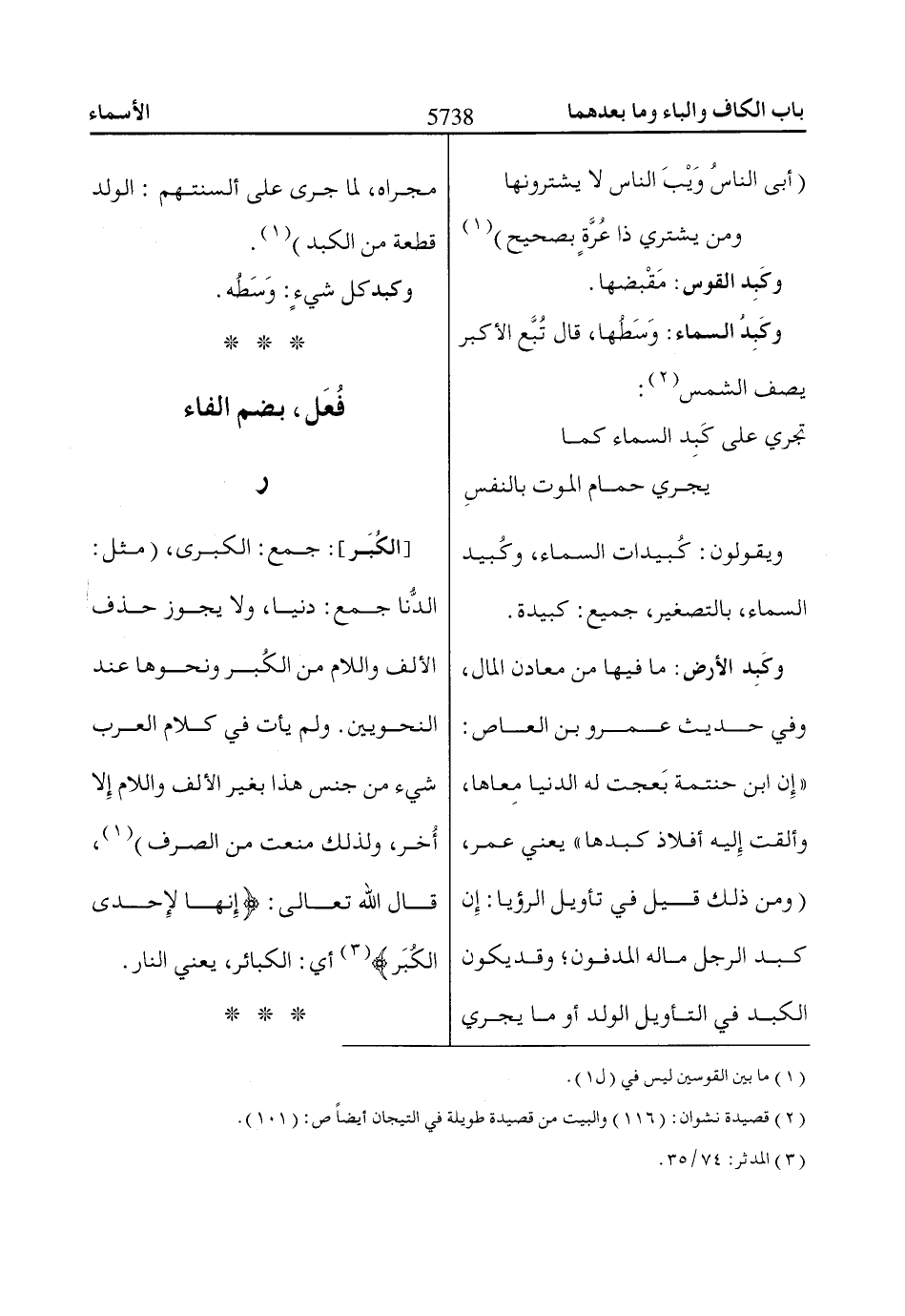 الدُّنا جمع: دنيا، ولا يجوز حذف الألف واللام من الكُبر ونحوها عند النحويين. ولم يأت في كلام العرب شيء من جنس هذا بغير الألف واللام إِلا أُخر، ولذلك منعت من الصرف) «1»، قال اللّاه تعالى: إِنَّهاا لَإِحْدَى الْكُبَرِ «3» أي: الكبائر، يعني النار.