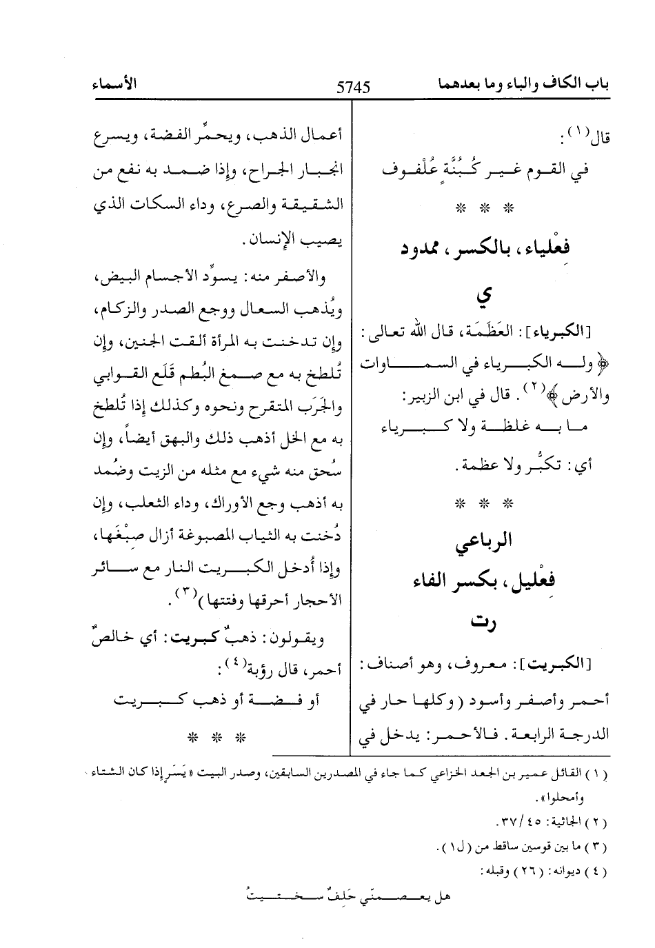 ويقولون: ذهبٌ كبريت: أي خالصٌ أحمر، قال رؤبة «4»: