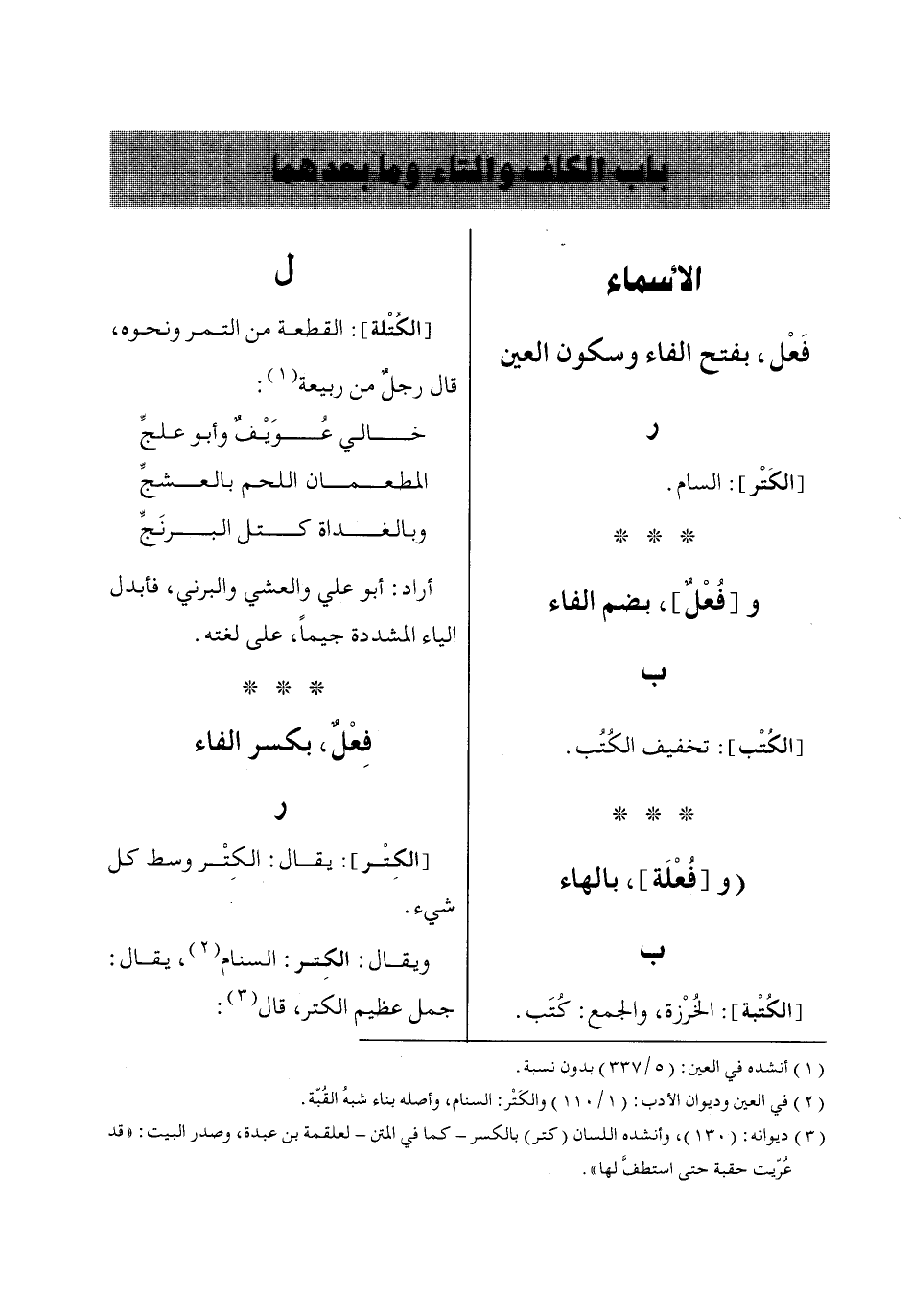 (2) في العين وديوان الأدب: (1/ 110) والكَتْر: السنام، وأصله بناء شبهُ القُبّة.