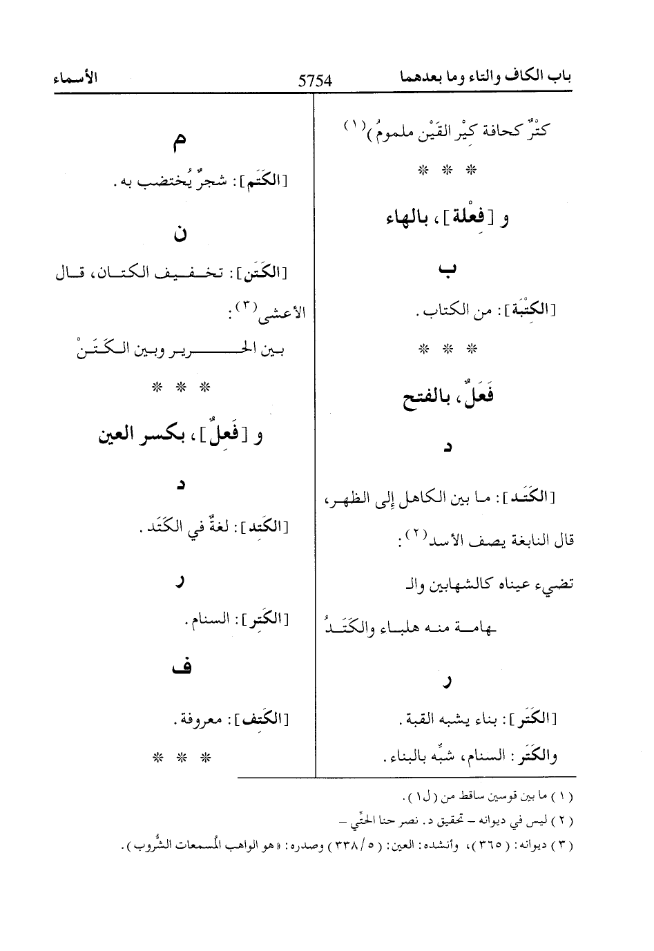 (3) ديوانه: (365)، وأنشده: العين: (5/ 338) وصدره: