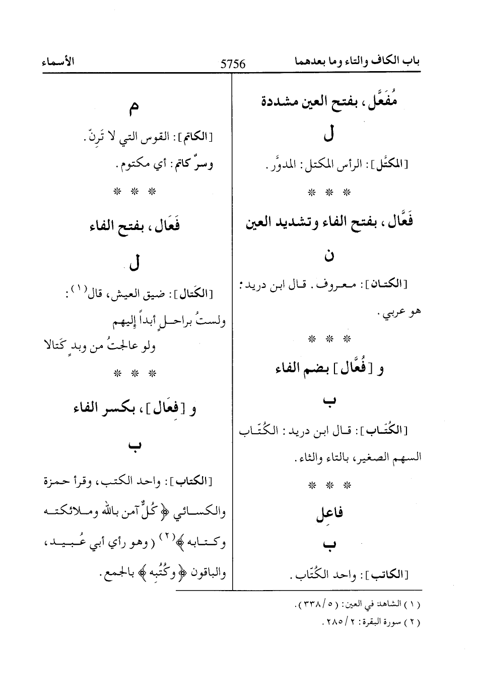 [الكتاب]: واحد الكتب، وقرأ حمزة والكسائي كُلٌّ آمَنَ بِاللّاهِ وَمَلاائِكَتِهِ وكتابه «2» (وهو رأي أبي عُبيد، والباقون وَكُتُبِهِ بالجمع.