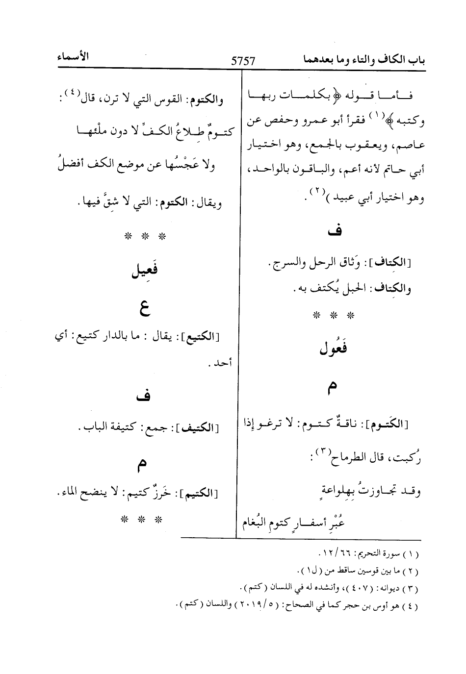 (4) هو أوس بن حجر كما في الصحاح: (5/ 2019) واللسان (كتم).
