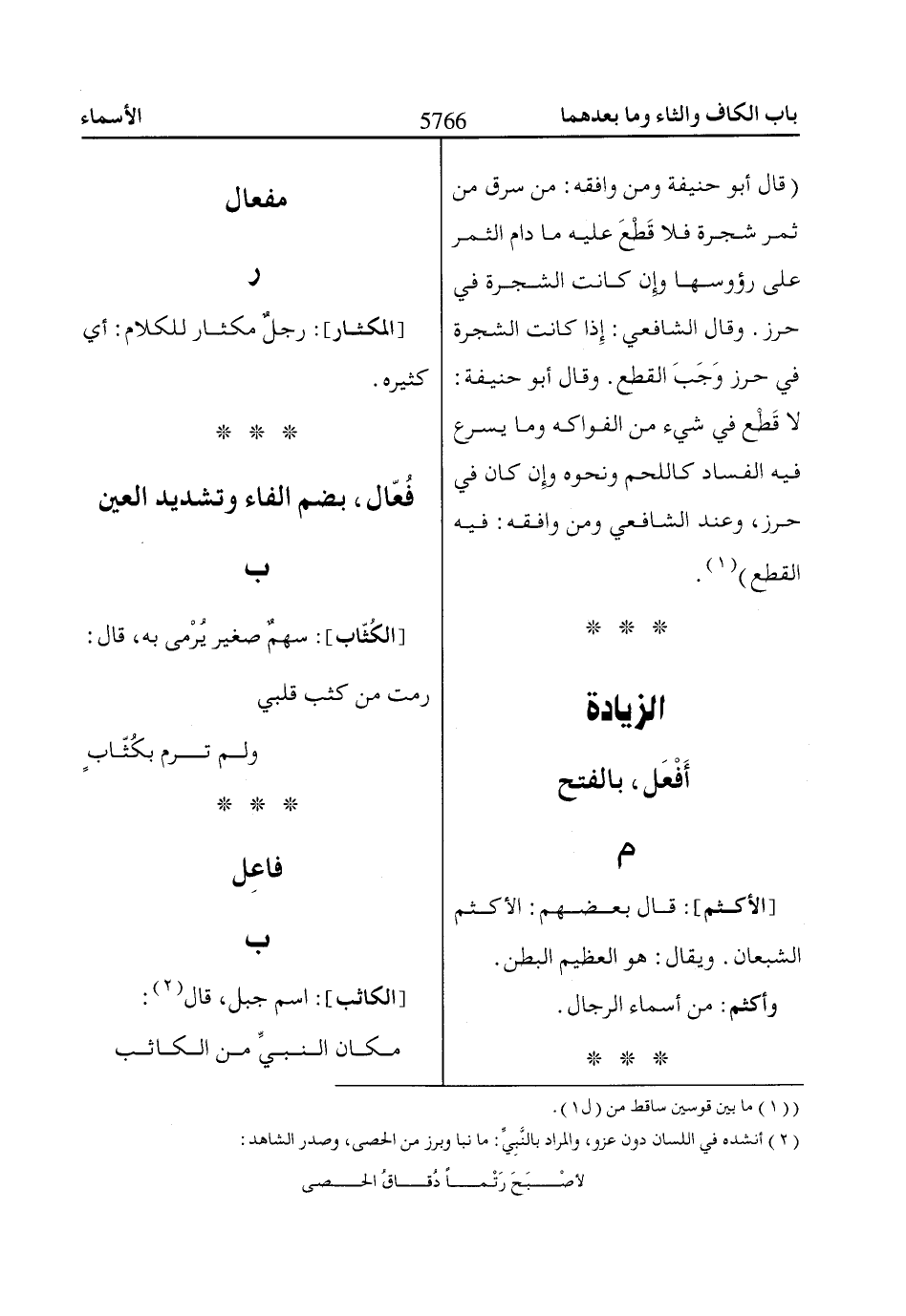 [الأكثم]: قال بعضهم: الأكثم الشبعان. ويقال: هو العظيم البطن.