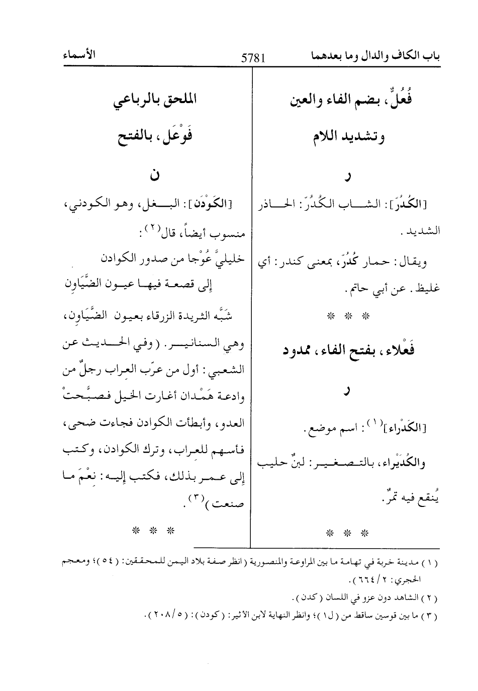 [الكَوْدَن]: البغل، وهو الكودني، منسوب أيضاً، قال «2»: