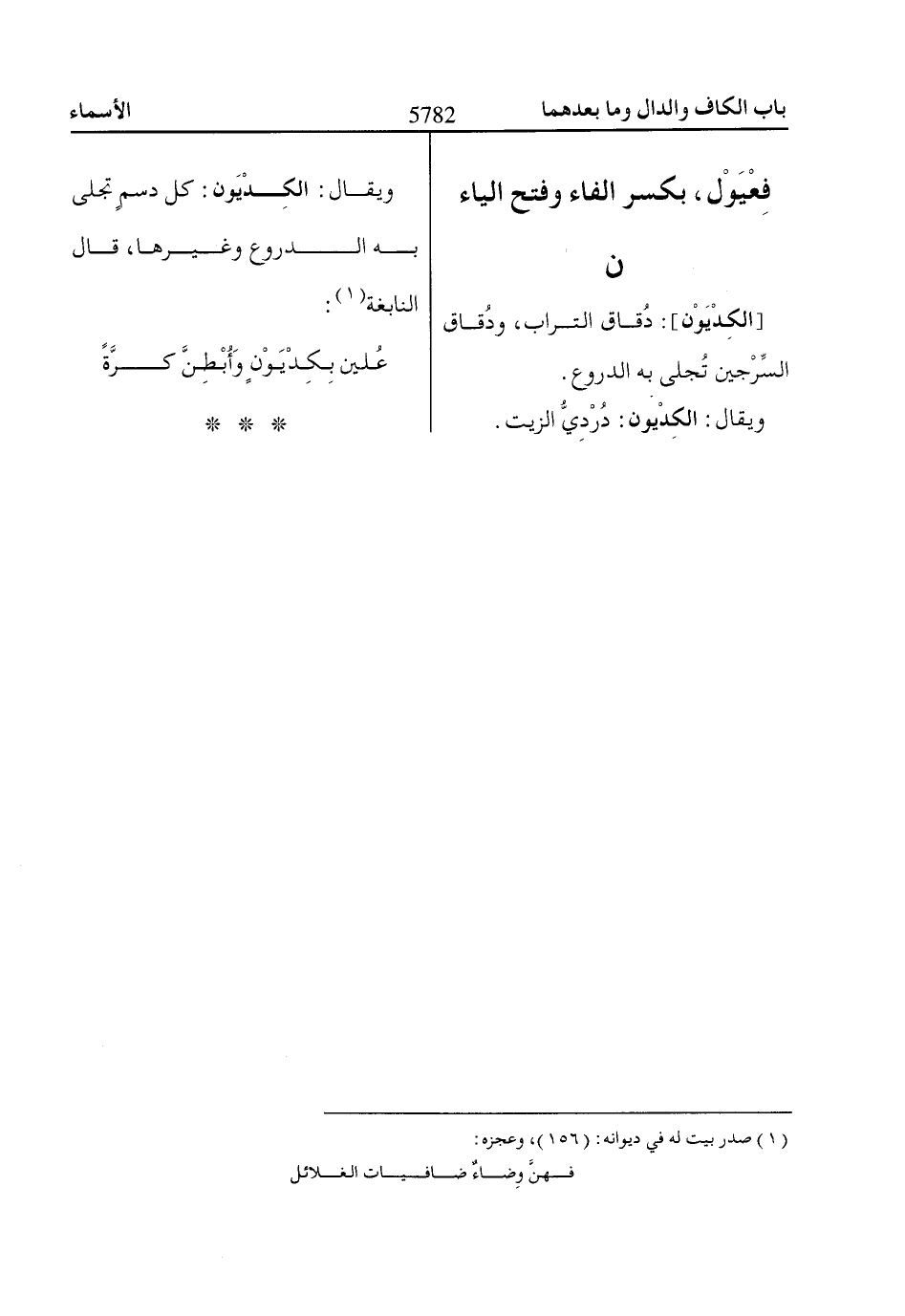 ويقال: الكِدْيَون: كل دسمٍ تجلى به الدروع وغيرها، قال النابغة «1»: