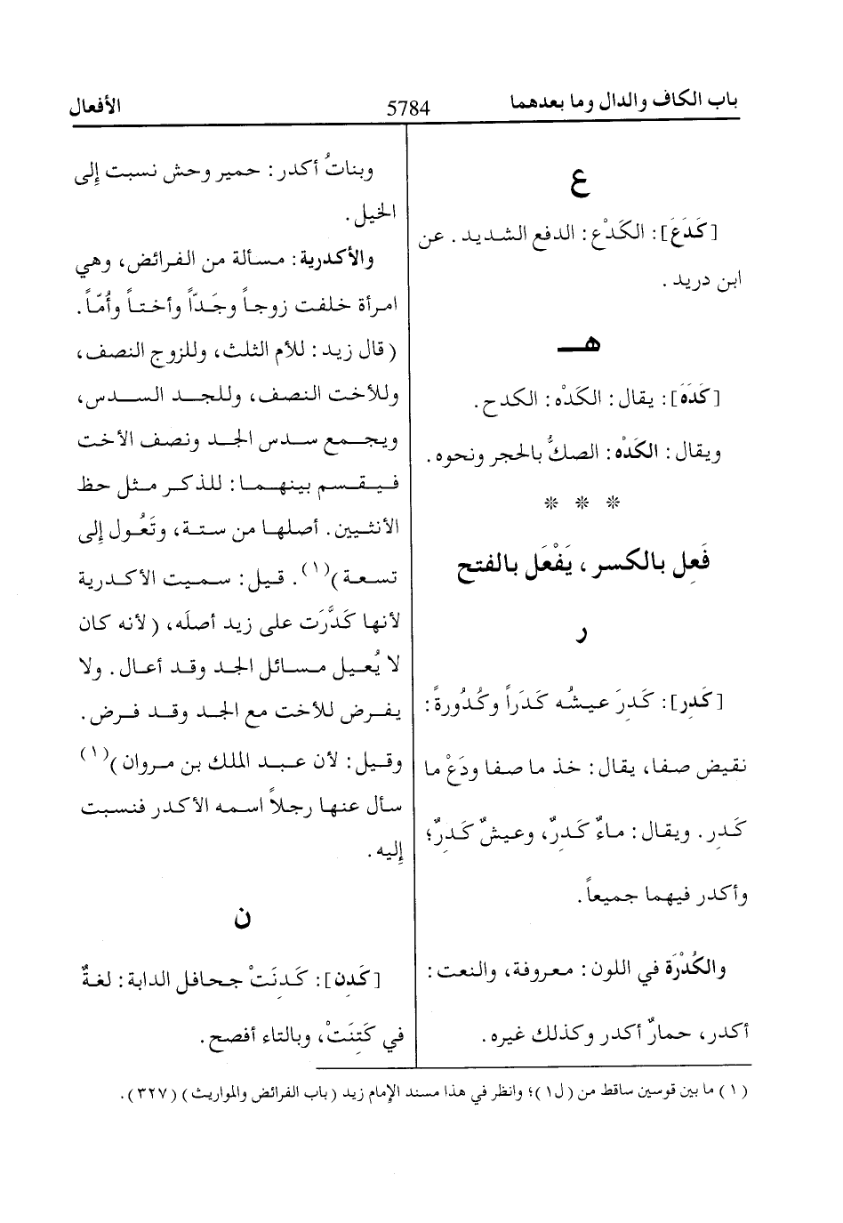 [كَدِن]: كَدِنَتْ جحافل الدابة: لغةٌ في كَتِنَتْ، وبالتاء أفصح.