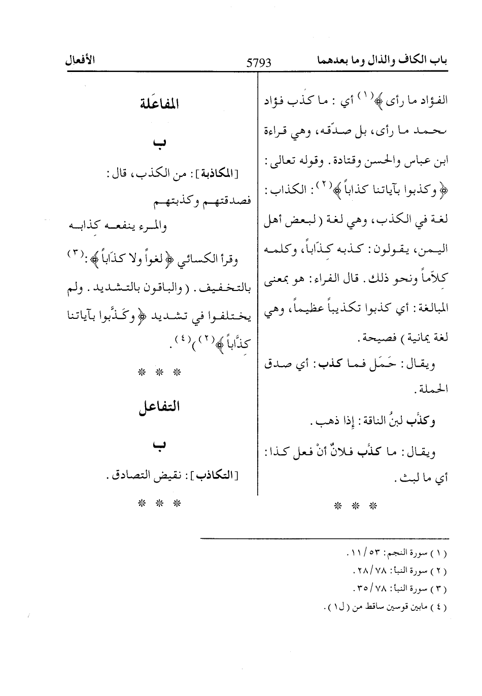 وَكَذَّبُوا بِآيااتِناا كِذّااباً «2»: الكذاب: