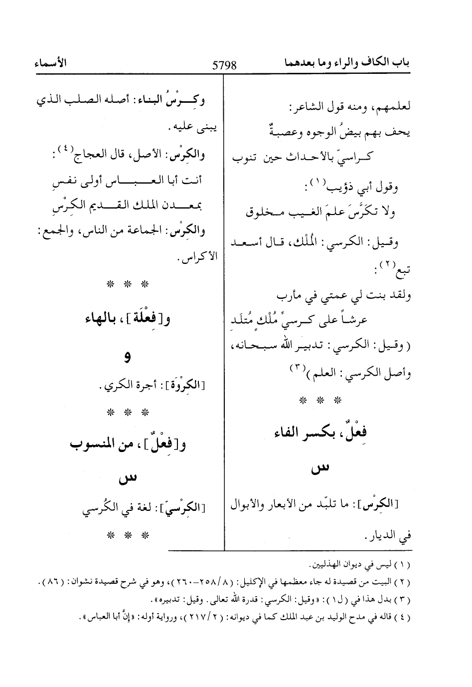 (وقيل: الكرسي: تدبير اللّاه سبحانه، وأصل الكرسي: العلم) «3»