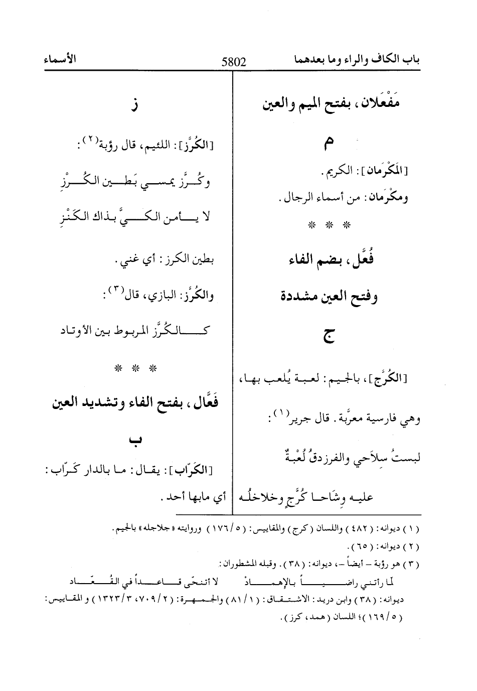 [الكُرَّز]: اللئيم، قال رؤبة «2»: