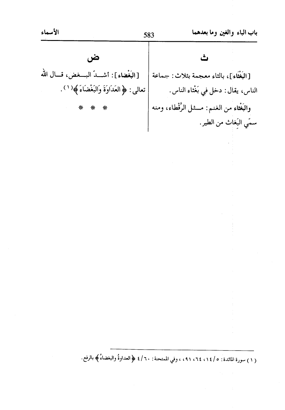 (1) سورة المائدة: 5/ 14، 64، 91، وفي الممتحنة: 60/ 4 الْعَدااوَةُ وَالْبَغْضااءُ بالرفع.