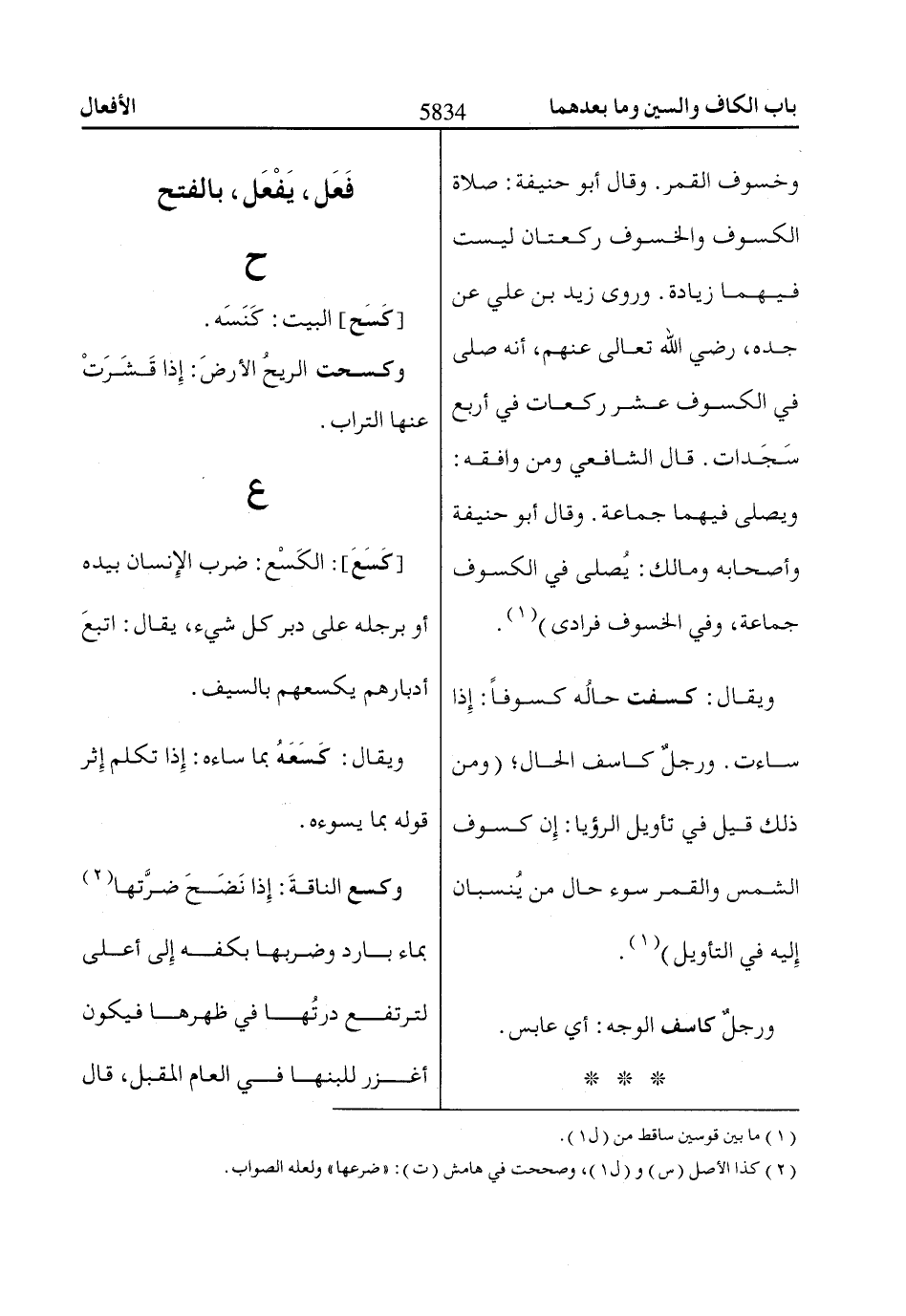 ويقال: كسفت حالُه كسوفاً: إِذا ساءت. ورجلٌ كاسف الحال؛ (ومن ذلك قيل في تأويل الرؤيا: إِن كسوف الشمس والقمر سوء حال من يُنسبان إِليه في التأويل) «1».