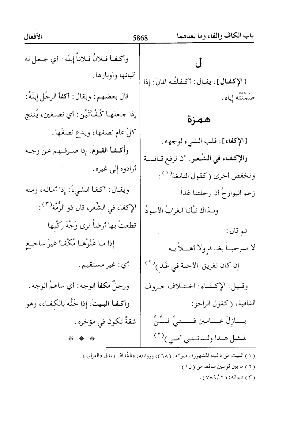 [الإِكفال]: يقال: أكفلتُه المالَ: إِذا ضَمَّنْتُه إِياه.