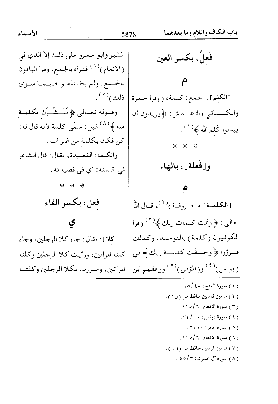 [الكَلِم]: جمع: كلمة، (وقرأ حمزة والكسائي والأعمش: يريدون أن يبدلوا كَلِم اللّاه «1».