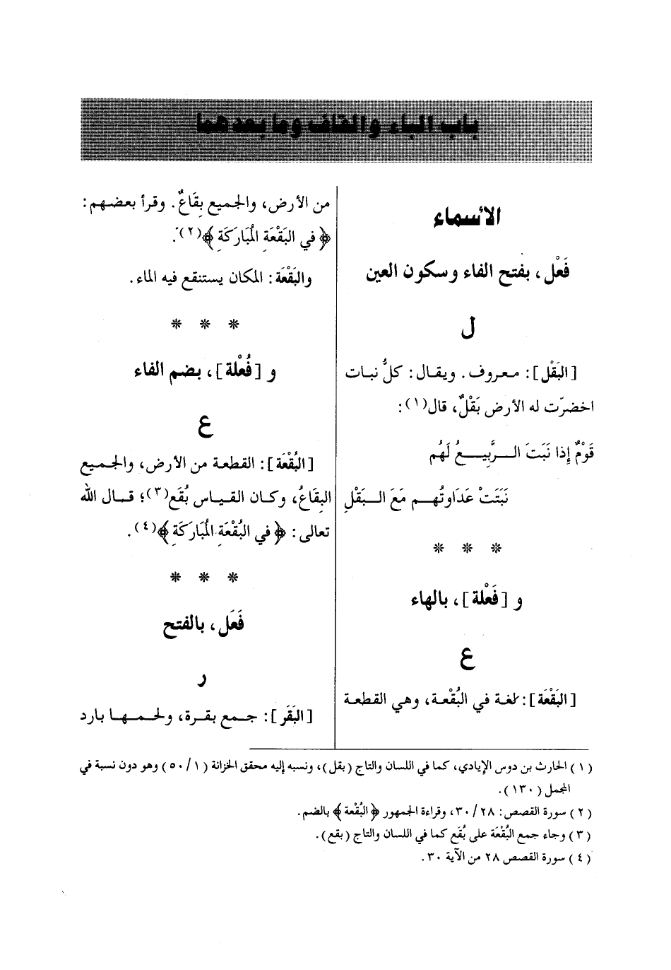(3) وجاء جمع البُقْعَة على بُقَع كما في اللسان والتاج (بقع).