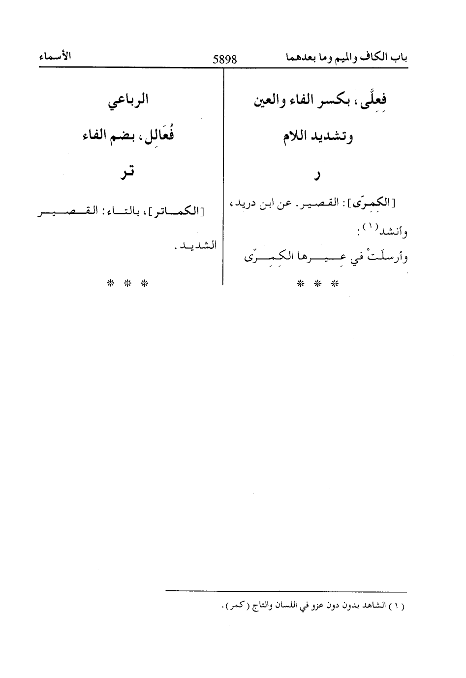 [الكِمِرّى]: القصير. عن ابن دريد، وأنشد «1»: