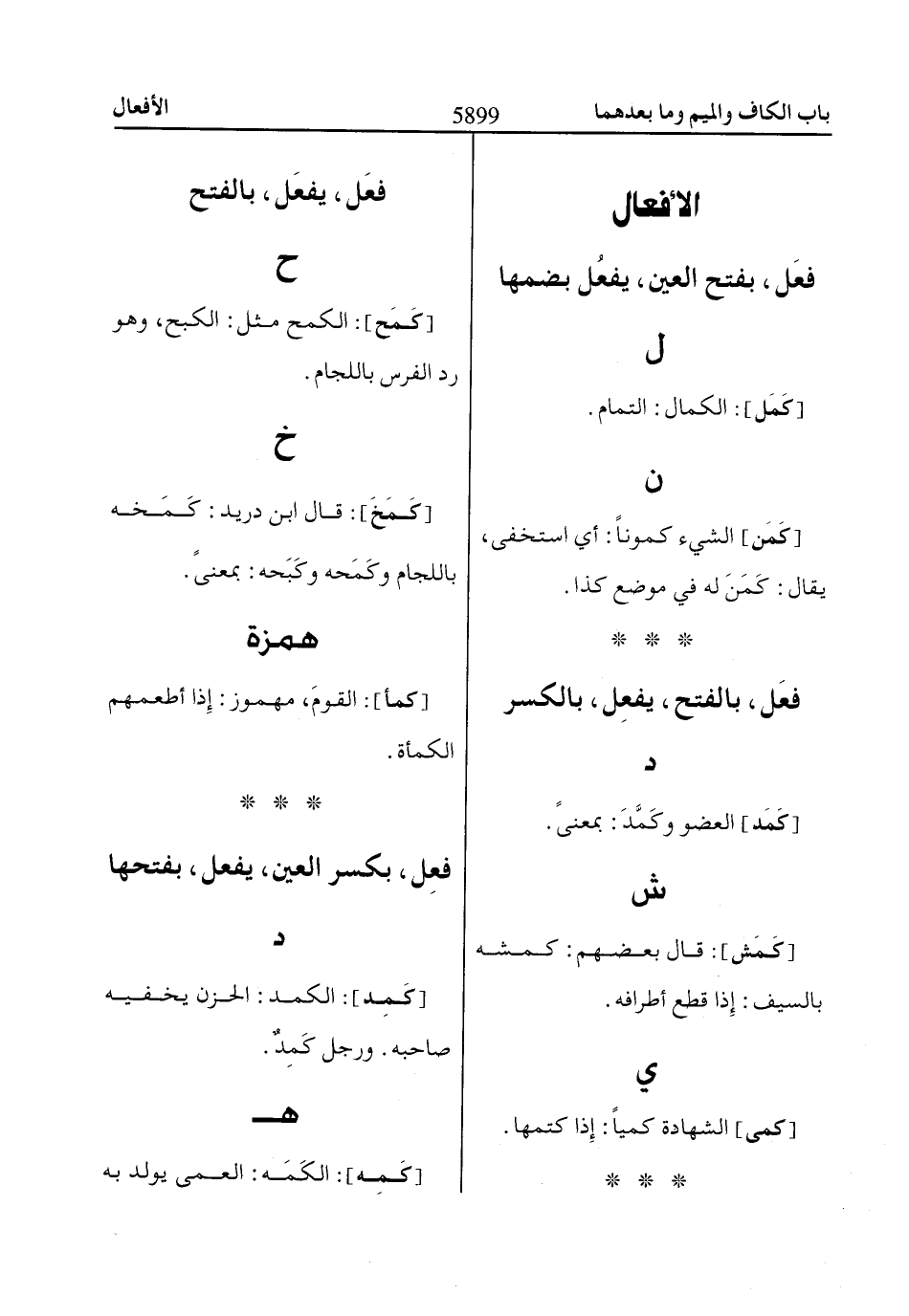 [كَمَح]: الكمح مثل: الكبح، وهو رد الفرس باللجام.