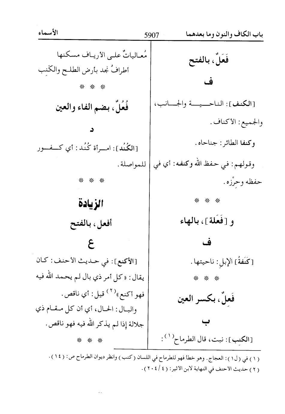 (1) في (ل 1): العجاج. وهو خطأ فهو للطرماح في اللسان (كنب) وانظر ديوان الطرماح ص: (14).