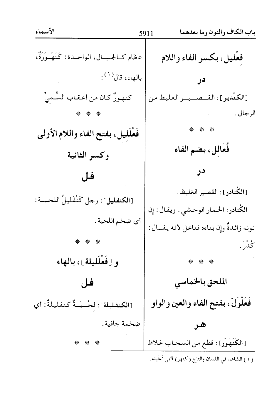 (1) الشاهد في اللسان والتاج (كنهر) لأبي نُخَيلة.