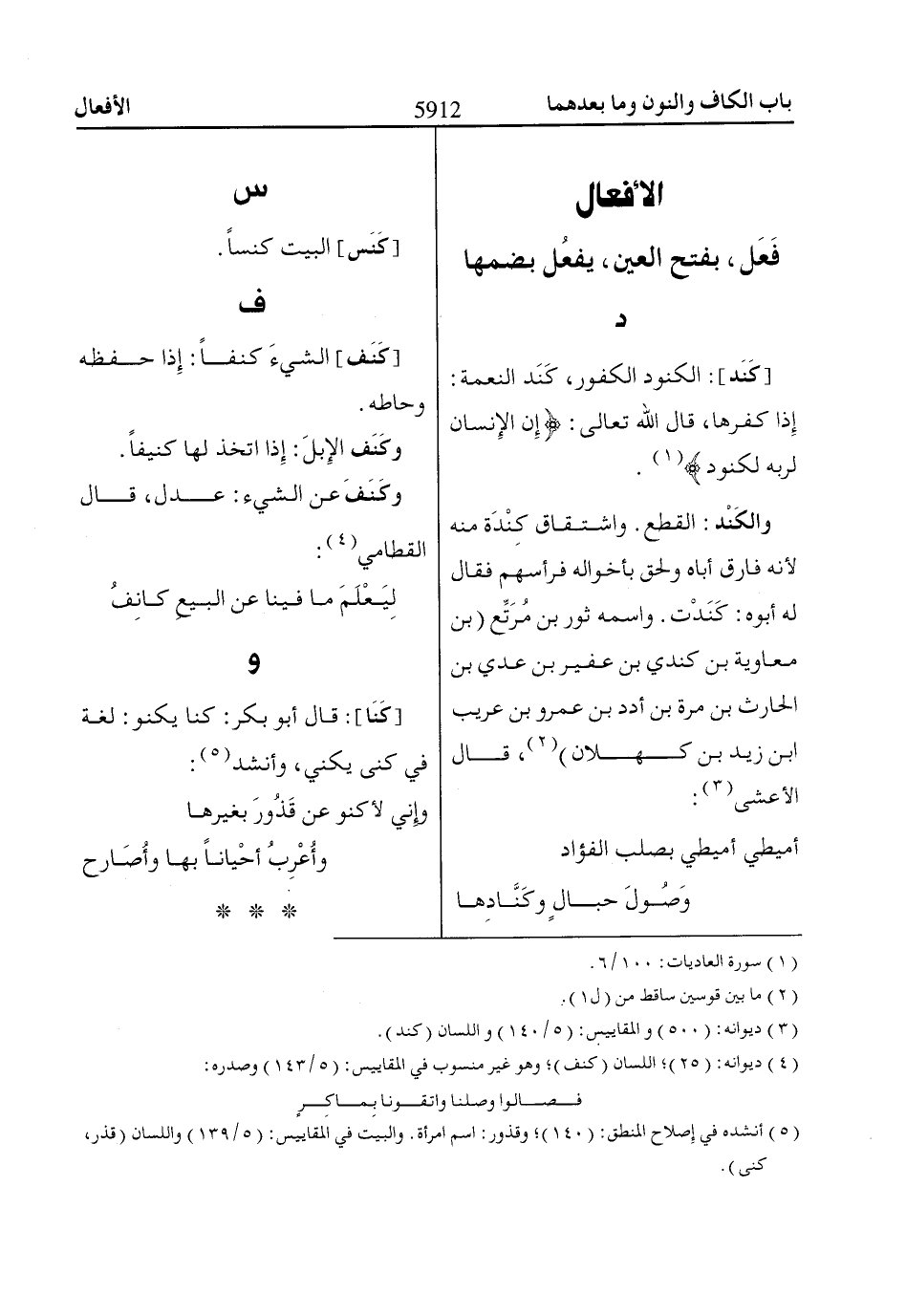 (4) ديوانه: (25)؛ اللسان (كنف)؛ وهو غير منسوب في المقاييس: (5/ 143) وصدره: