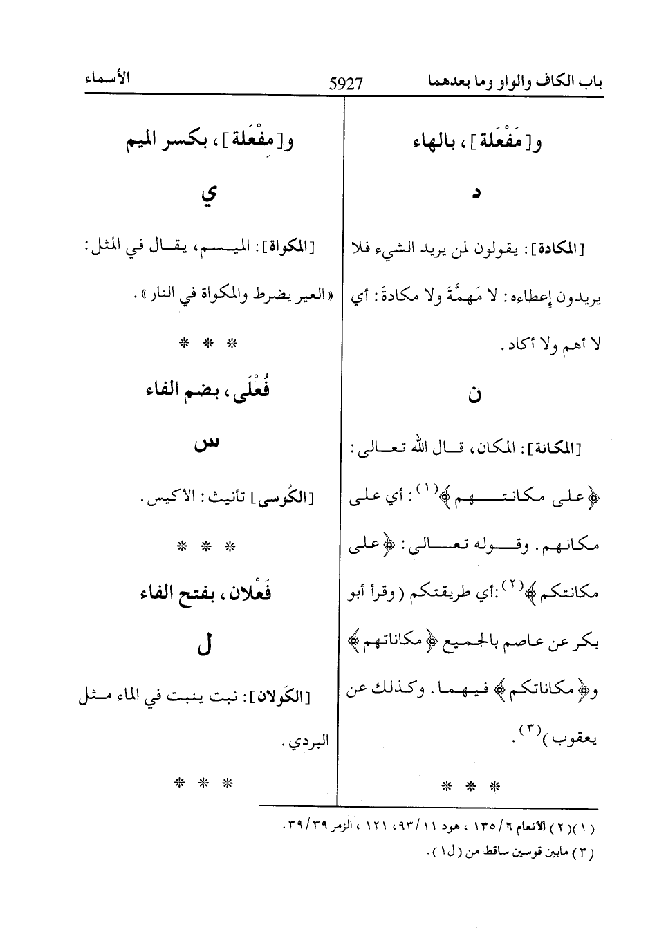عَلى مَكاانَتِهِمْ (1): أي على مكانهم. وقوله تعالى: عَلى مَكاانَتِكُمْ* «2»: أي طريقتكم (وقرأ أبو بكر عن عاصم بالجميع مكاناتهم ومكاناتكم فيهما. وكذلك عن يعقوب) «3».