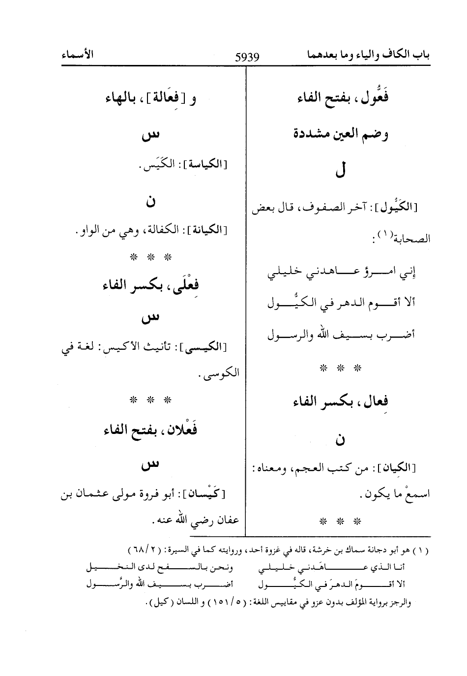 [الكَيُّول]: آخر الصفوف، قال بعض الصحابة «1»: