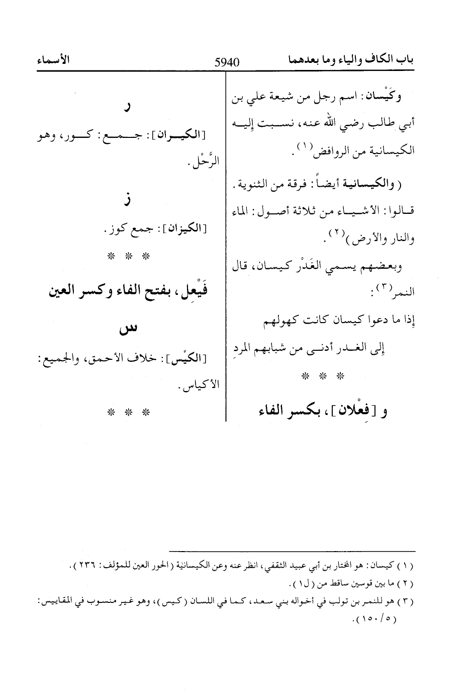 وكَيْسان: اسم رجل من شيعة علي بن أبي طالب رضي اللّاه عنه، نسبت إِليه الكيسانية من الروافض «1».