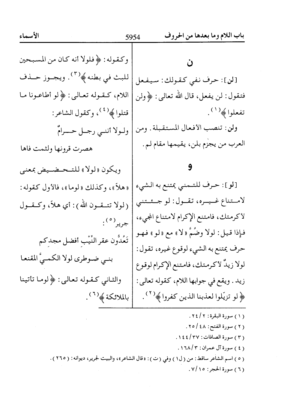 ولن: تنصب الأفعال المستقبلة. ومن العرب من يجزم بلن، يقيمها مقام لم.