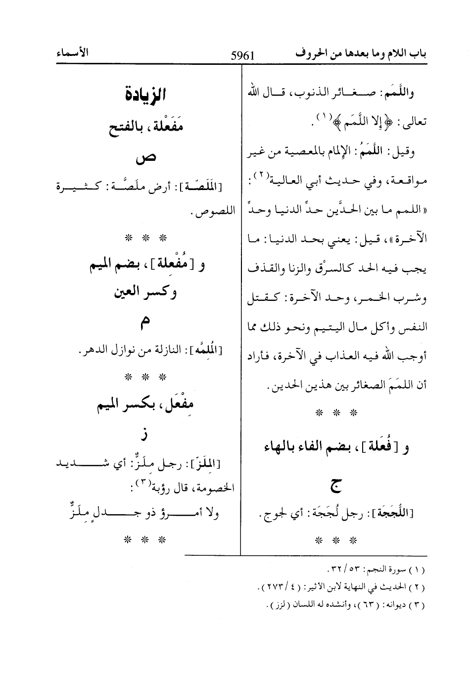 واللَّمَم: صغائر الذنوب، قال اللّاه تعالى: إِلَّا اللَّمَمَ «1».