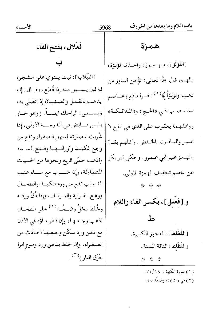 [اللؤلؤ]، مهموز: واحدته لؤلؤة، بالهاء، قال اللّاه تعالى: مِنْ أَسااوِرَ مِنْ ذَهَبٍ وَلُؤْلُؤاً* «1»: قرأ نافع وعاصم بالنصب في «الحج» و «الملائكة» ووافقهما يعقوب على الذي في الحج لا غير والباقون بالخفض. وكلهم يقرأ بالهمز غير أبي عمرو. وحكى أبو بكر عن عاصم تخفيف الهمزة الأولى.
