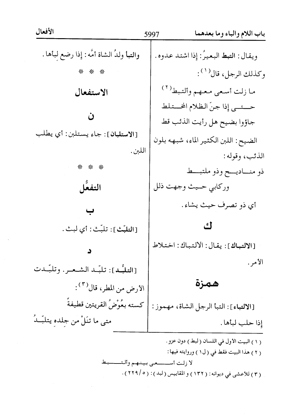 (3) للأعشى في ديوانه: (132) والمقاييس (لبد): (5/ 229).
