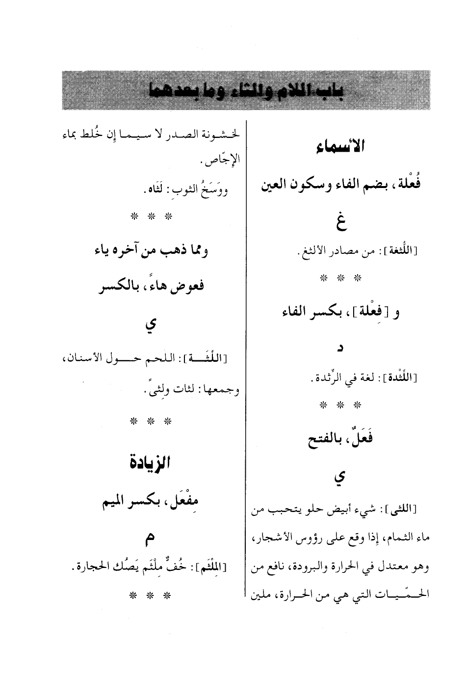 [اللثى]: شيء أبيض حلو يتحبب من ماء الثمام، إِذا وقع على رؤوس الأشجار، وهو معتدل في الحرارة والبرودة، نافع من الحمّيات التي هي من الحرارة، ملين لخشونة الصدر لا سيما إِن خُلط بماء الإِجّاص.
